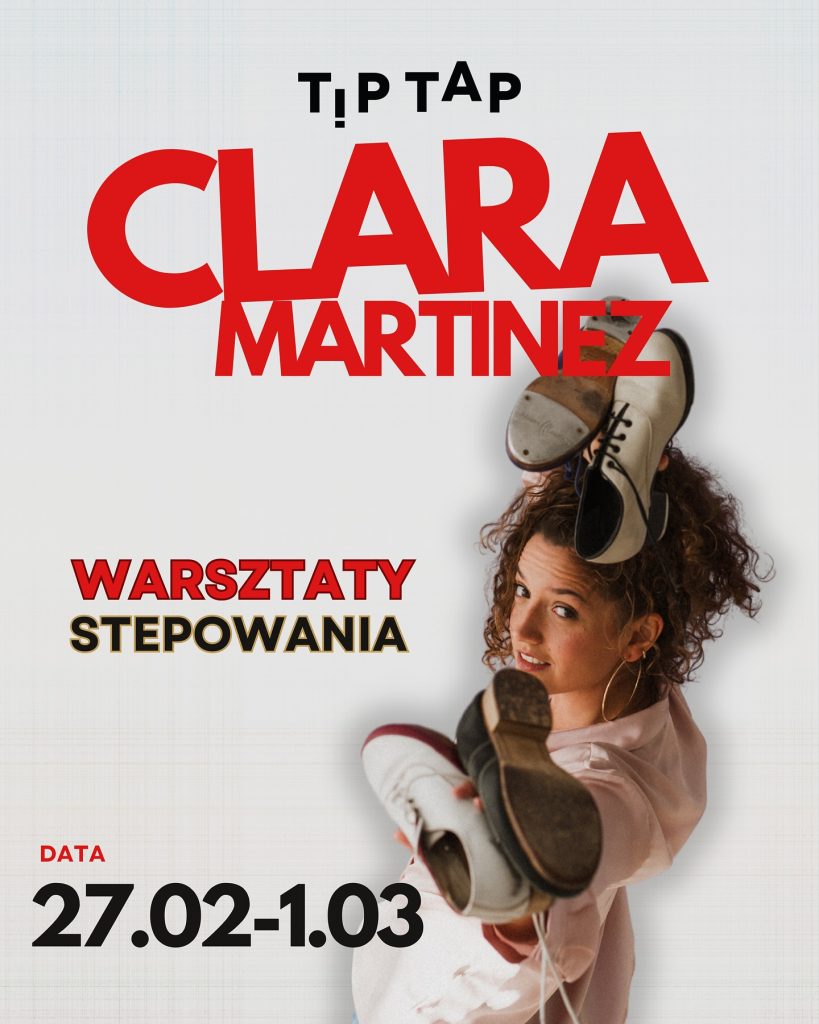Już pod koniec lutego odwiedzi nas Clara Martinez – wspaniała tancerka Tap Dance prosto z Barcelony! Nim podzielimy się z Wami szczegółami wydarzenia – już teraz zarezerwujcie sobie termin na wspólne stepowanie!